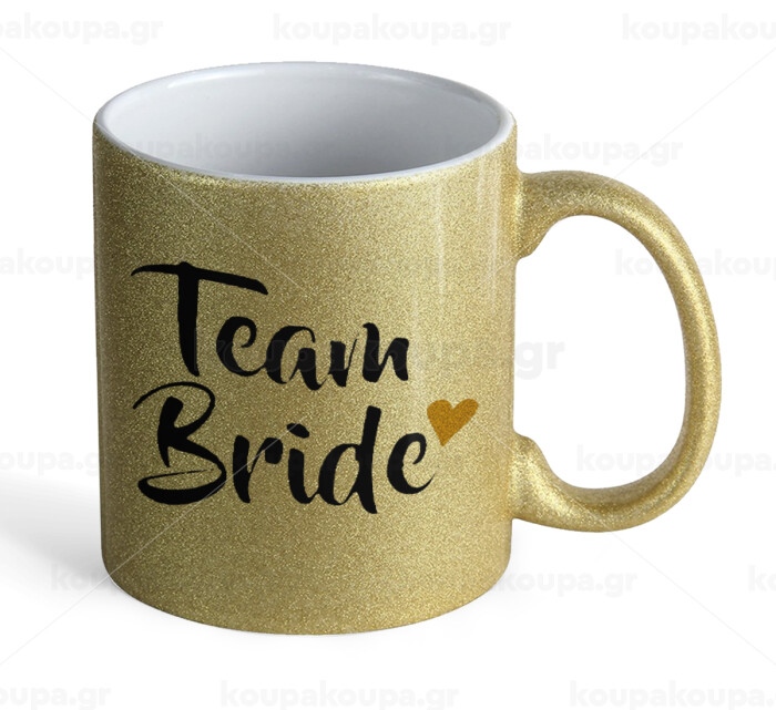 Team Bride, Κούπα Χρυσή Glitter που γυαλίζει, κεραμική, 330ml