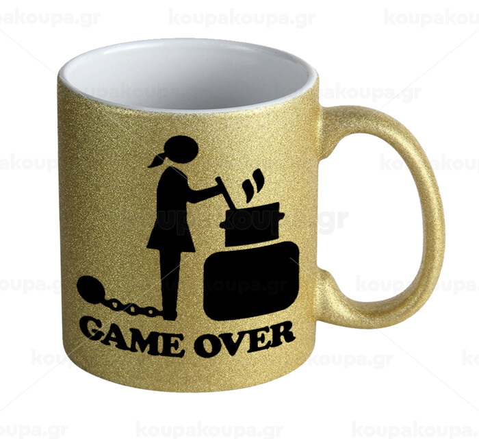 Woman Game Over, Κούπα Χρυσή Glitter που γυαλίζει, κεραμική, 330ml