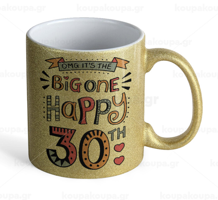 Big one Happy 30th, Κούπα Χρυσή Glitter που γυαλίζει, κεραμική, 330ml