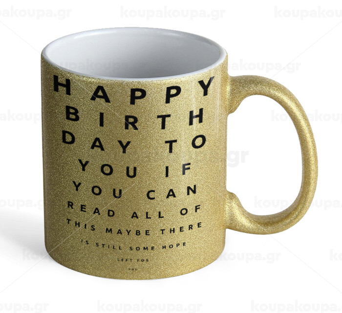 EYE tester happy birthday., Κούπα Χρυσή Glitter που γυαλίζει, κεραμική, 330ml