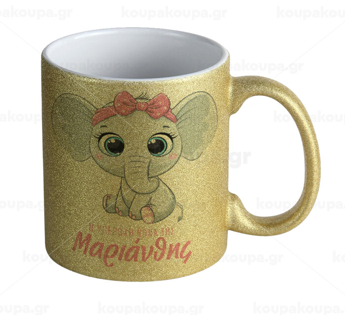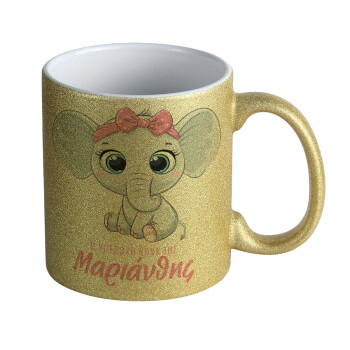 Η νονά μου, ελεφαντάκι ροζ, Κούπα Χρυσή Glitter που γυαλίζει, κεραμική, 330ml