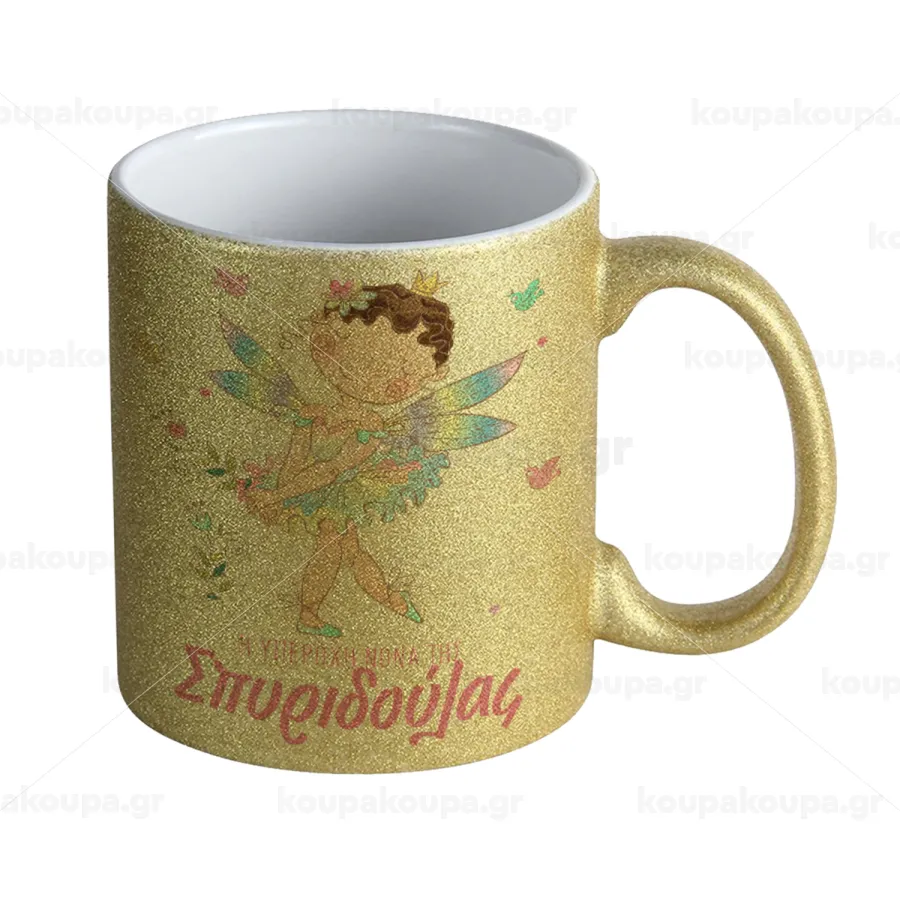 Η νονά μου, Νεράϊδα, Κούπα Χρυσή Glitter που γυαλίζει, κεραμική, 330ml
