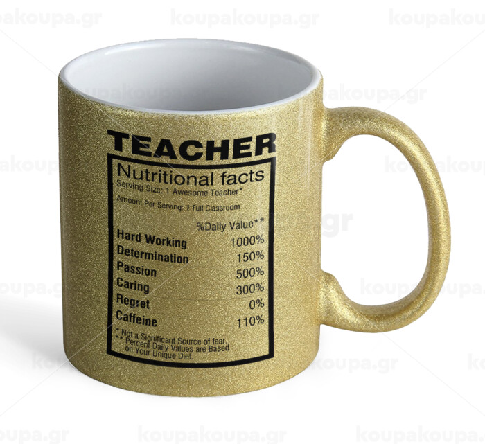 teacher nutritional facts, Κούπα Χρυσή Glitter που γυαλίζει, κεραμική, 330ml