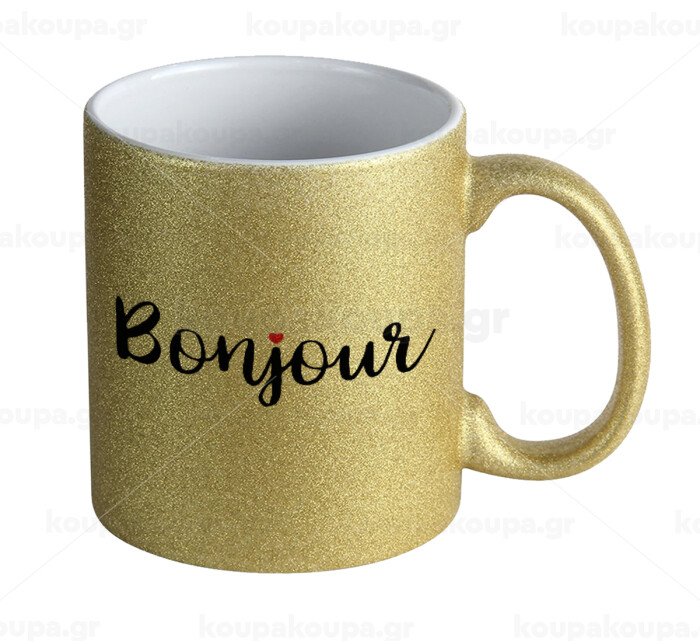Bonjour, Κούπα Χρυσή Glitter που γυαλίζει, κεραμική, 330ml