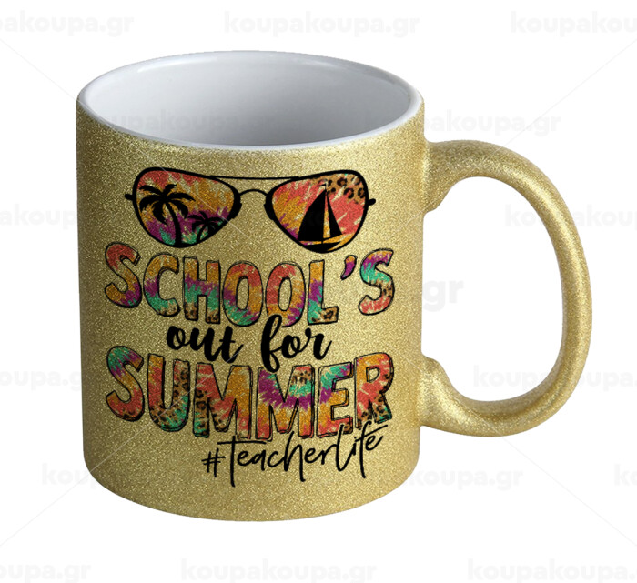 School's Out For Summer Teacher Life, Κούπα Χρυσή Glitter που γυαλίζει, κεραμική, 330ml