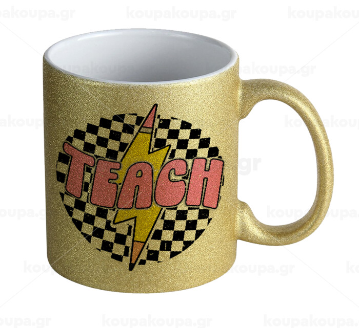 Teach, Κούπα Χρυσή Glitter που γυαλίζει, κεραμική, 330ml