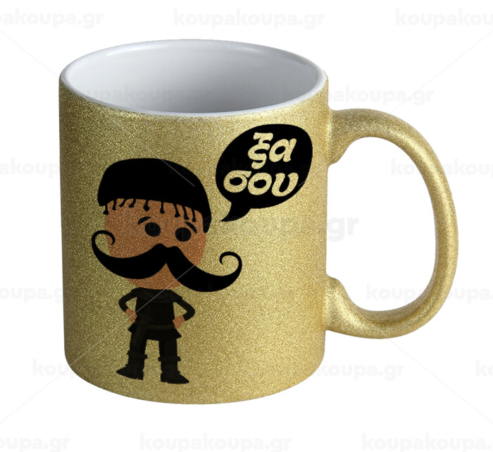 Κρητικός "Ξα σου", Κούπα Χρυσή Glitter που γυαλίζει, κεραμική, 330ml