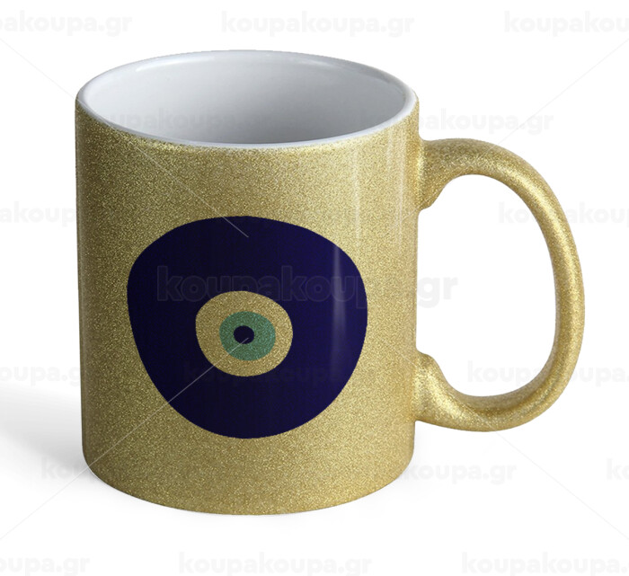 Χάντρα γαλαζιά, Κούπα Χρυσή Glitter που γυαλίζει, κεραμική, 330ml