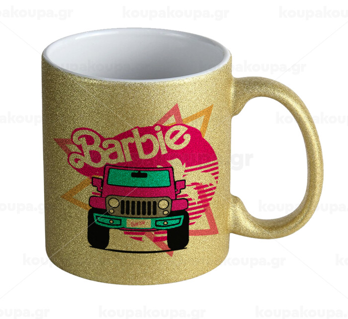 Barbie car, Κούπα Χρυσή Glitter που γυαλίζει, κεραμική, 330ml