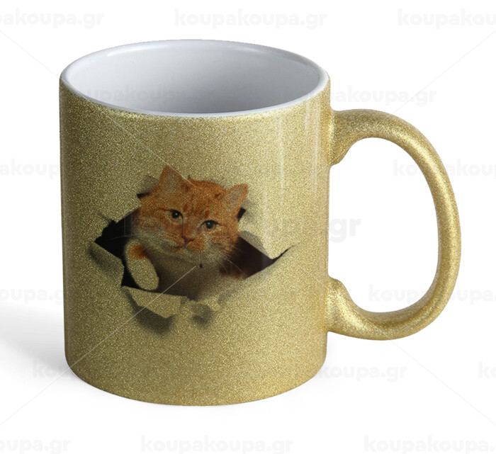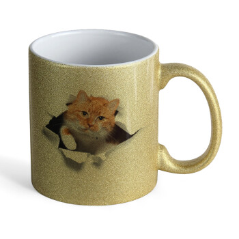 Cat cracked, Κούπα Χρυσή Glitter που γυαλίζει, κεραμική, 330ml