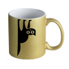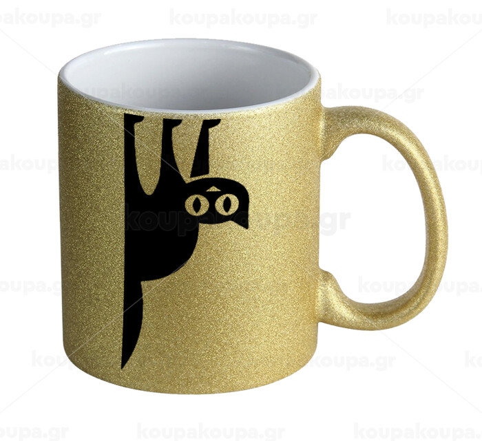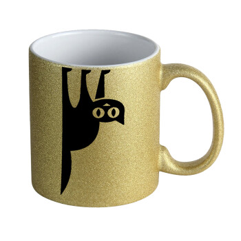 Cat upside down, Κούπα Χρυσή Glitter που γυαλίζει, κεραμική, 330ml