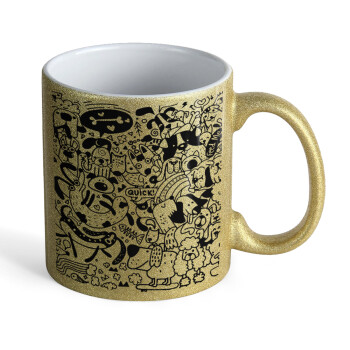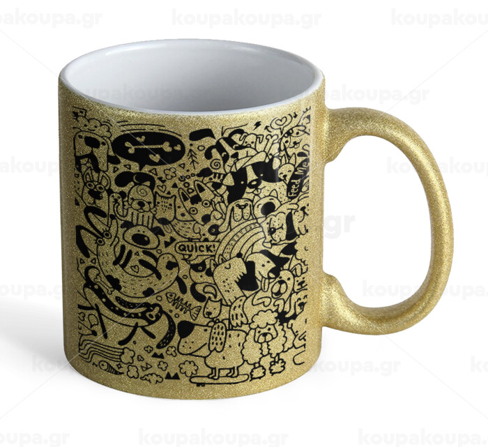 DOG pattern, Κούπα Χρυσή Glitter που γυαλίζει, κεραμική, 330ml