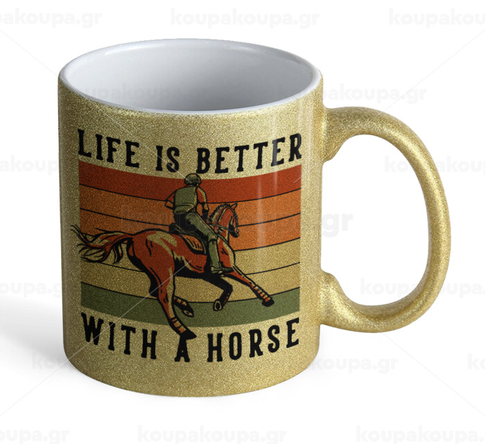 Life is Better with a Horse, Κούπα Χρυσή Glitter που γυαλίζει, κεραμική, 330ml