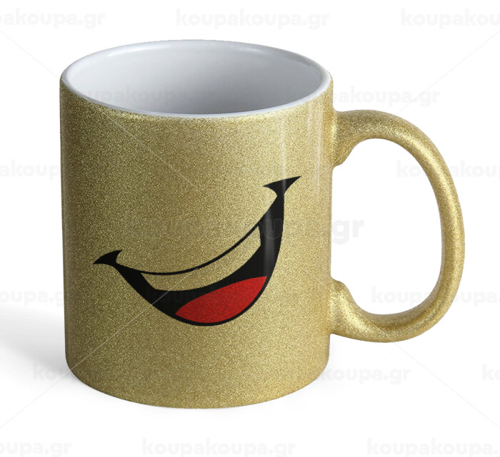 Φατσούλα γελάω!!!, Κούπα Χρυσή Glitter που γυαλίζει, κεραμική, 330ml
