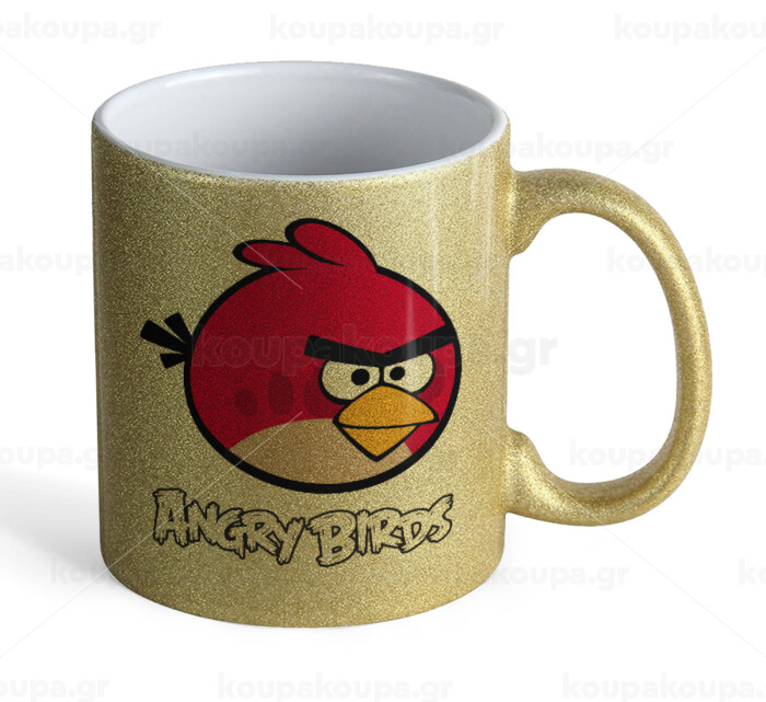 Angry birds Terence, Κούπα Χρυσή Glitter που γυαλίζει, κεραμική, 330ml