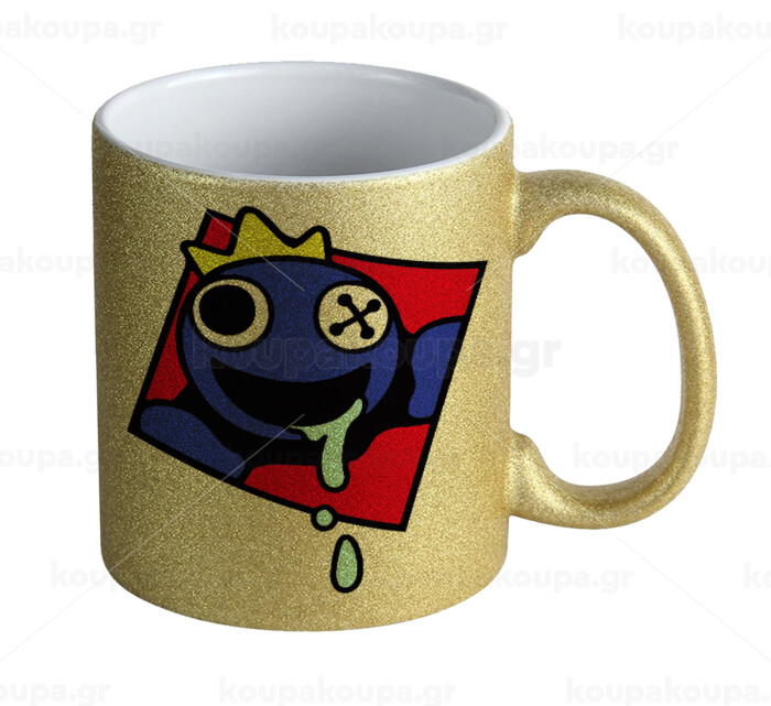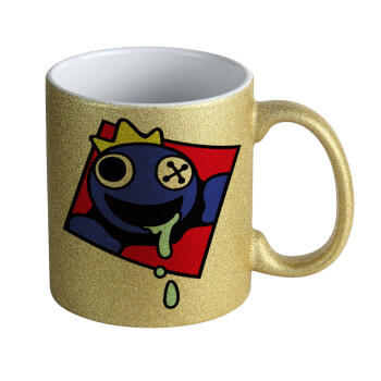 Blue, Rainbow friends, Κούπα Χρυσή Glitter που γυαλίζει, κεραμική, 330ml