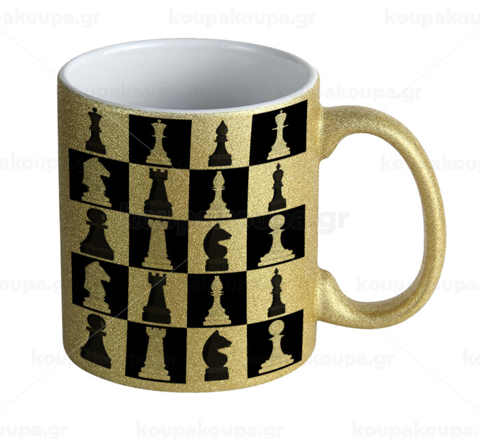 Chess set, Κούπα Χρυσή Glitter που γυαλίζει, κεραμική, 330ml