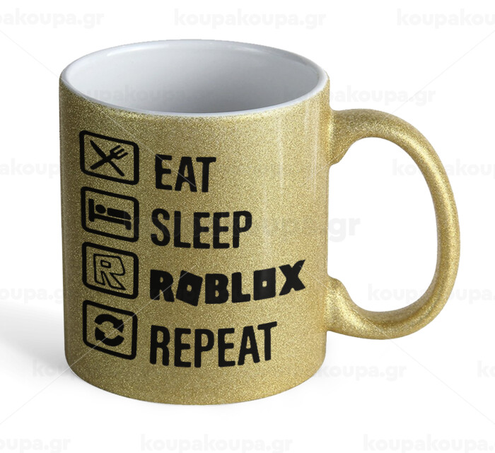 Eat, Sleep, Roblox, Repeat, Κούπα Χρυσή Glitter που γυαλίζει, κεραμική, 330ml