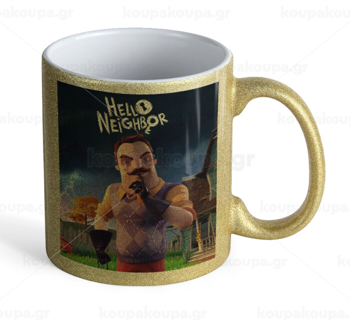 Hello Neighbor, Κούπα Χρυσή Glitter που γυαλίζει, κεραμική, 330ml