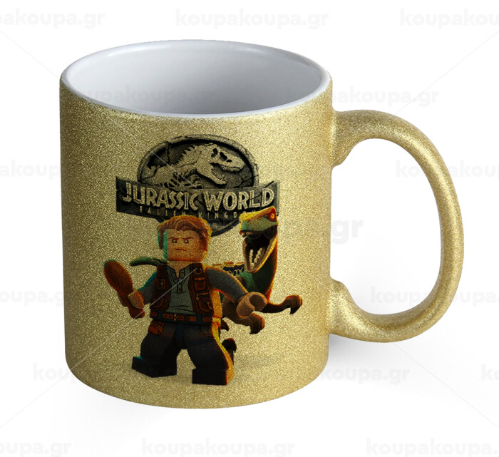 Jurassic world, Κούπα Χρυσή Glitter που γυαλίζει, κεραμική, 330ml