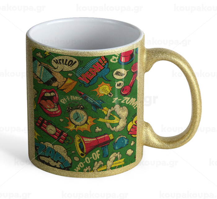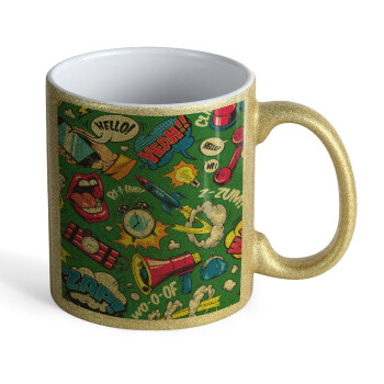 Pop art colorful seamless, Κούπα Χρυσή Glitter που γυαλίζει, κεραμική, 330ml
