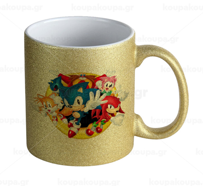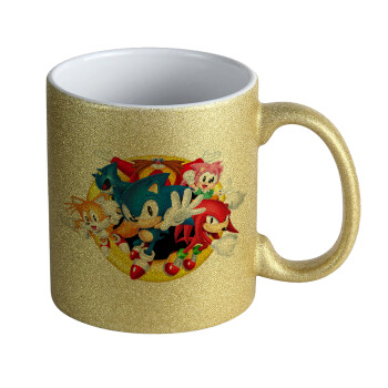 Sonic and friends, Κούπα Χρυσή Glitter που γυαλίζει, κεραμική, 330ml