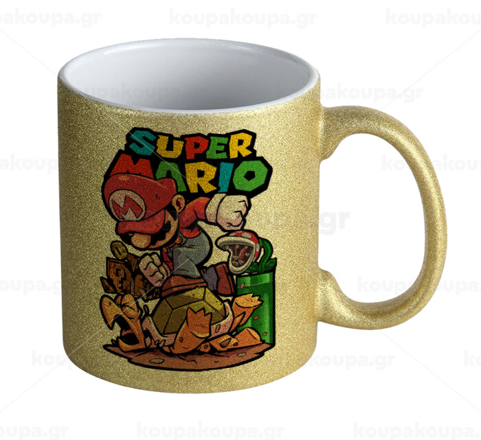 Super mario Jump, Κούπα Χρυσή Glitter που γυαλίζει, κεραμική, 330ml