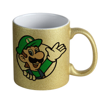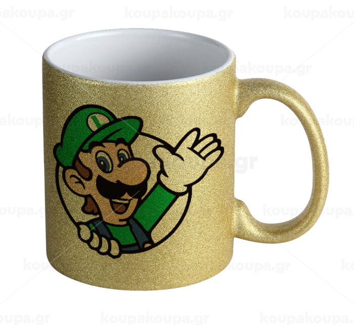 Super mario Luigi win, Κούπα Χρυσή Glitter που γυαλίζει, κεραμική, 330ml