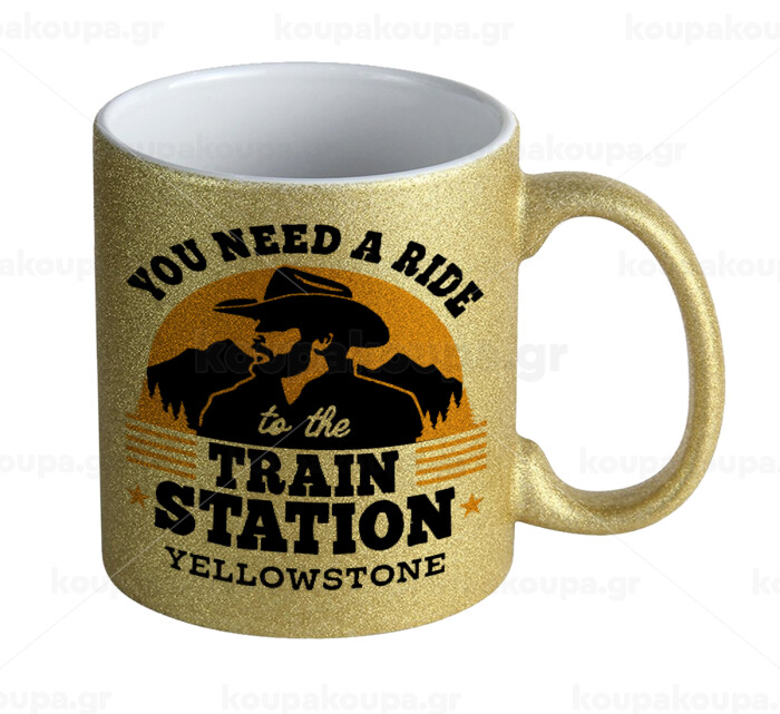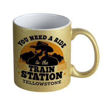 You need a ride to the train station, Κούπα Χρυσή Glitter που γυαλίζει, κεραμική, 330ml
