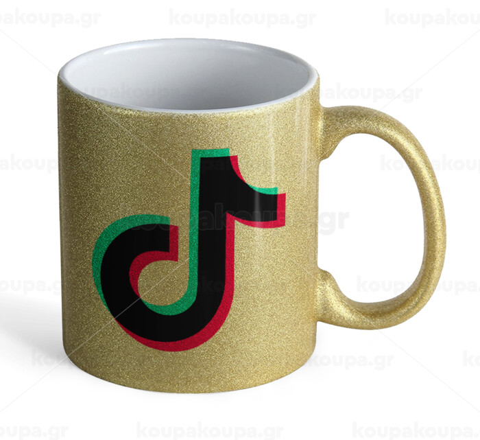 tik tok, Κούπα Χρυσή Glitter που γυαλίζει, κεραμική, 330ml