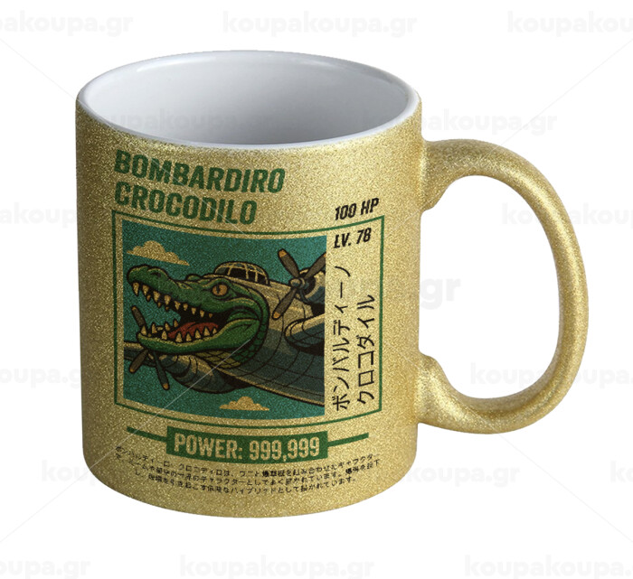 Bombardiro Crocodilo, Κούπα Χρυσή Glitter που γυαλίζει, κεραμική, 330ml