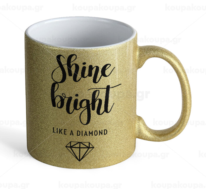 Bright, Shine like a Diamond, Κούπα Χρυσή Glitter που γυαλίζει, κεραμική, 330ml
