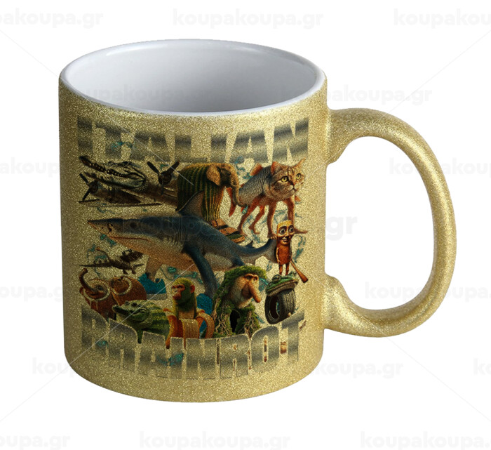 Italian Brainrot, Κούπα Χρυσή Glitter που γυαλίζει, κεραμική, 330ml