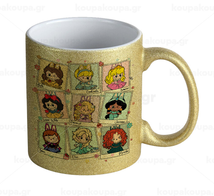 Labubu characters, Κούπα Χρυσή Glitter που γυαλίζει, κεραμική, 330ml