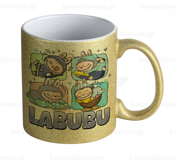 Labubu, Κούπα Χρυσή Glitter που γυαλίζει, κεραμική, 330ml