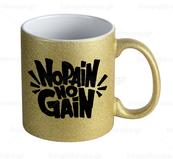 No pain no gain, Κούπα Χρυσή Glitter που γυαλίζει, κεραμική, 330ml