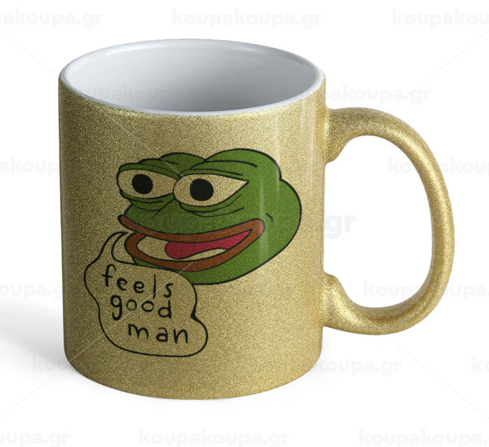 Pepe the frog, Κούπα Χρυσή Glitter που γυαλίζει, κεραμική, 330ml