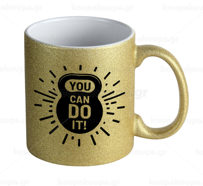 You can do it, Κούπα Χρυσή Glitter που γυαλίζει, κεραμική, 330ml