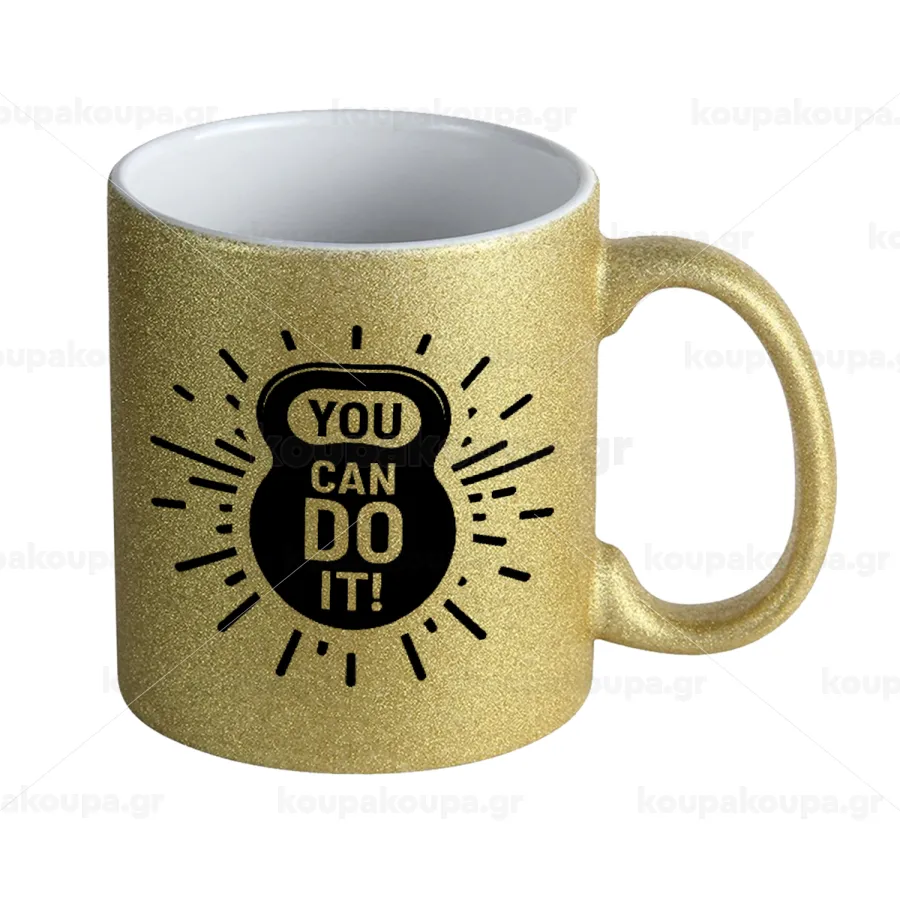 You can do it, Κούπα Χρυσή Glitter που γυαλίζει, κεραμική, 330ml