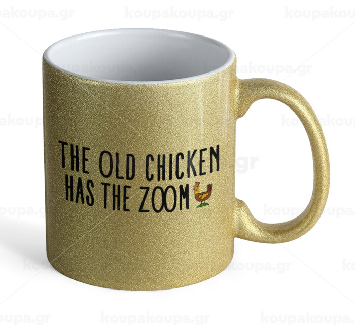The old chicken has the zoom, Κούπα Χρυσή Glitter που γυαλίζει, κεραμική, 330ml