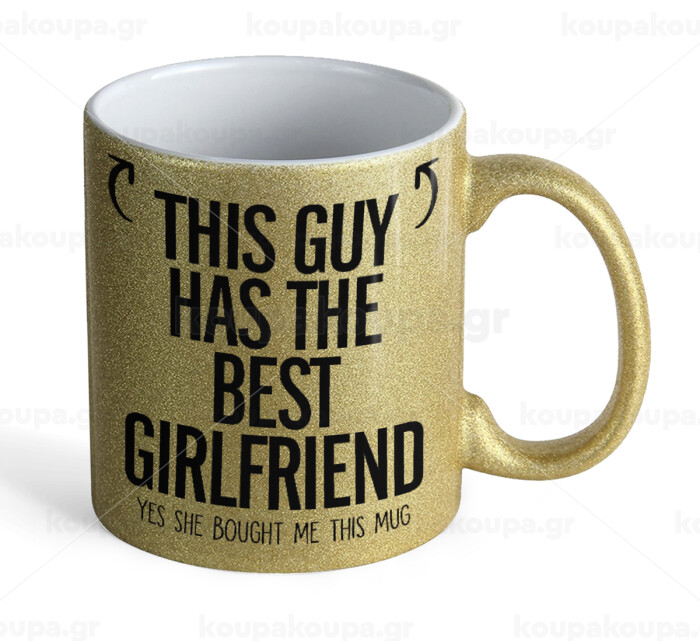 This guy has the best Girlfriend, Κούπα Χρυσή Glitter που γυαλίζει, κεραμική, 330ml