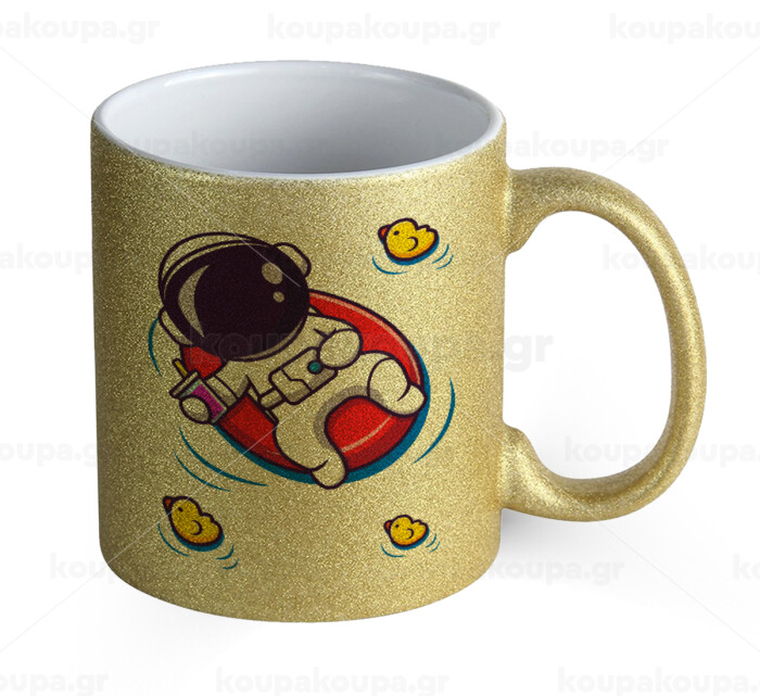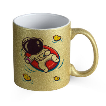 Μικρός αστροναύτης θάλασσα, Κούπα Χρυσή Glitter που γυαλίζει, κεραμική, 330ml