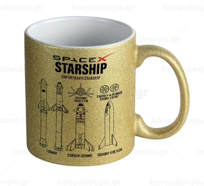 Space X, Κούπα Χρυσή Glitter που γυαλίζει, κεραμική, 330ml