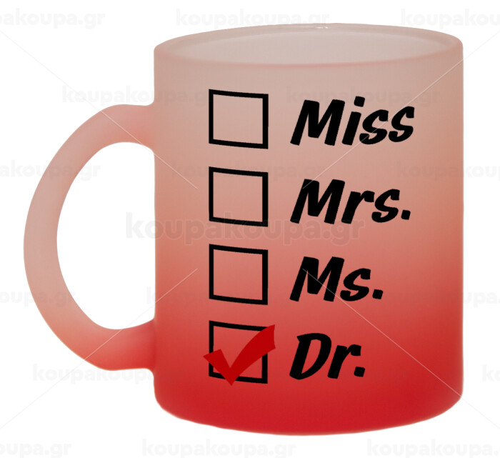 Miss, Mrs, Ms, DR, Κούπα γυάλινη δίχρωμη με βάση το κόκκινο ματ, 330ml