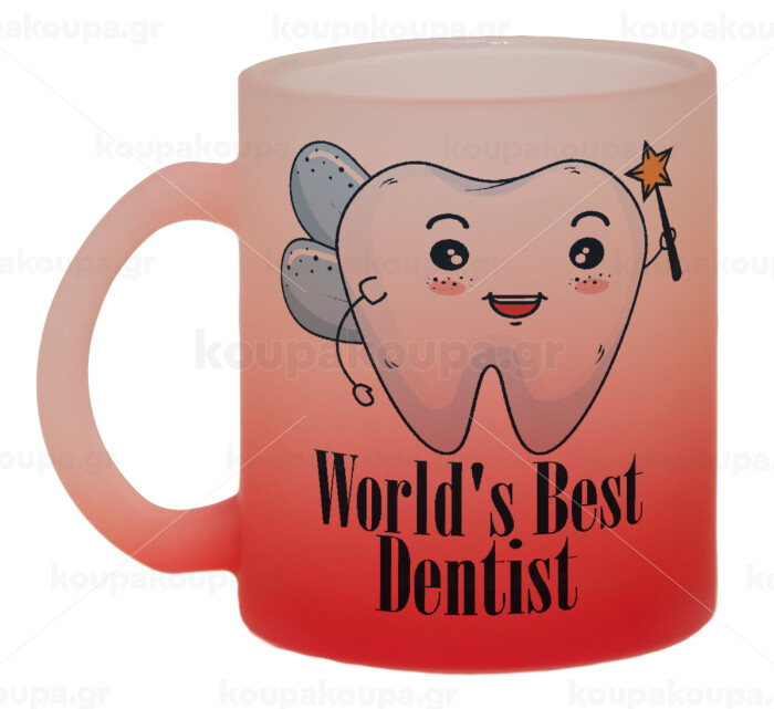 World's Best Dentist, Κούπα γυάλινη δίχρωμη με βάση το κόκκινο ματ, 330ml