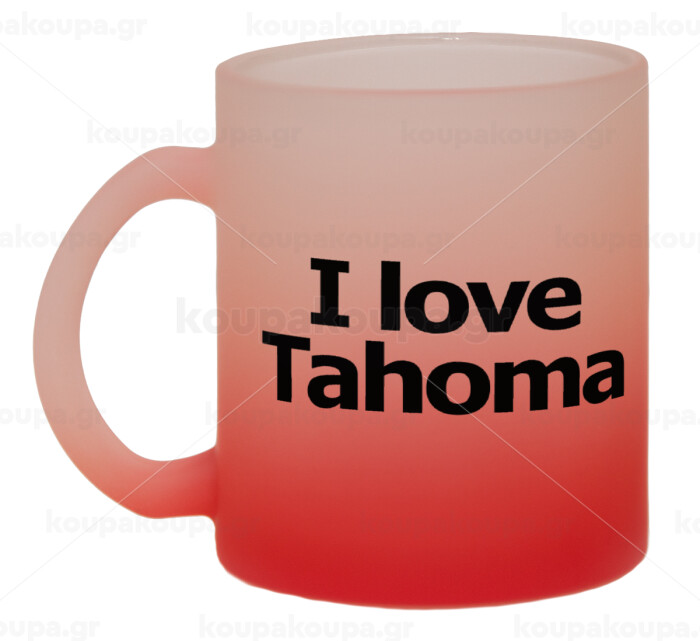 I love Tahoma, Κούπα γυάλινη δίχρωμη με βάση το κόκκινο ματ, 330ml
