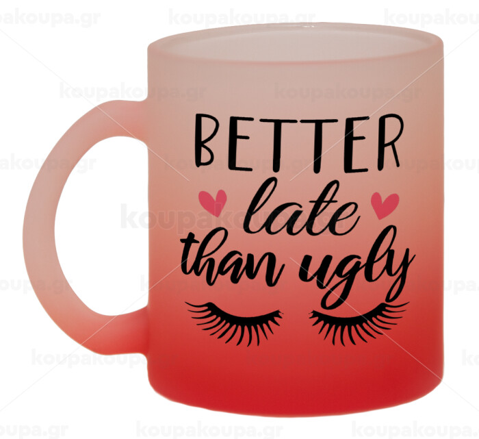 Better late than ugly, Κούπα γυάλινη δίχρωμη με βάση το κόκκινο ματ, 330ml