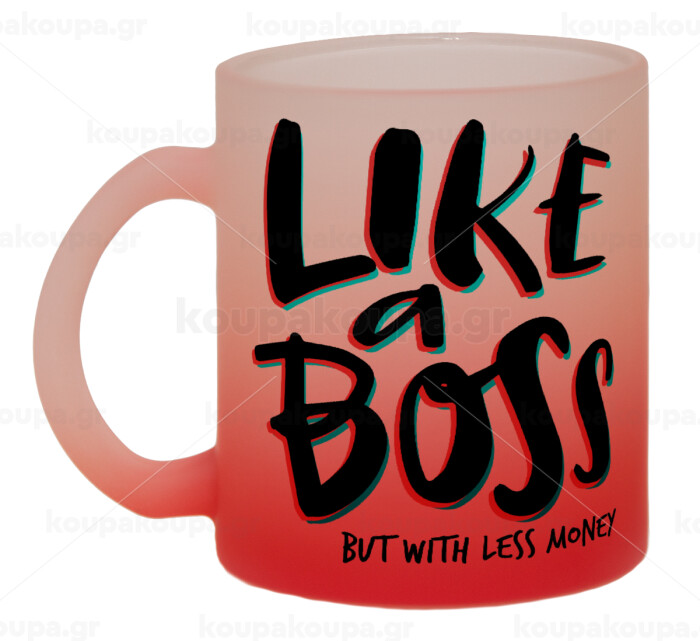 Like a boss, but with less money!!!, Κούπα γυάλινη δίχρωμη με βάση το κόκκινο ματ, 330ml