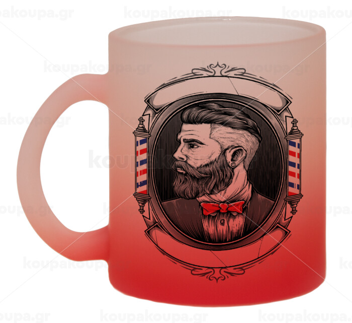 Barber shop, Κούπα γυάλινη δίχρωμη με βάση το κόκκινο ματ, 330ml