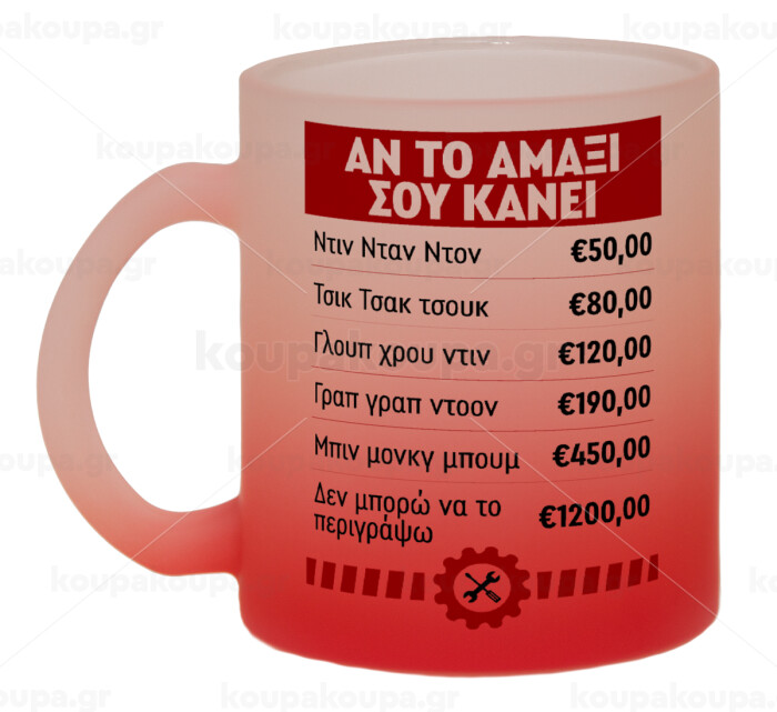 Annoying Noise in Car, Κούπα γυάλινη δίχρωμη με βάση το κόκκινο ματ, 330ml